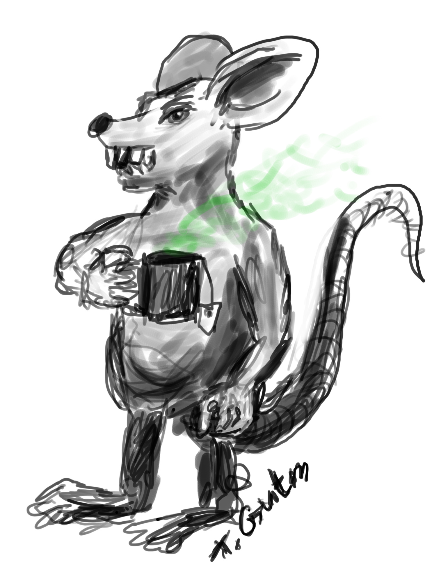 Ratebild: Ratte mit Heißgetränk (Digitalzeichnung)